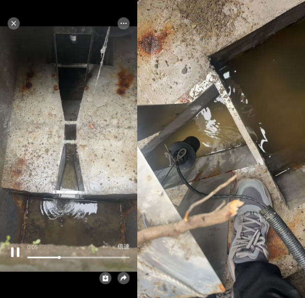 整改意見:2024年1月安裝時能正常準確測量,一年后儀表逐漸出現液位跳動(數據偏大),經現場排查后,確定是因為巴歇爾槽內側壁(支架內壁)被腐蝕出現有銹和其它附著物在傳感器發射角度內,產生測量誤差;建議現場可將400mm高支架修改降低到200mm高或者探頭垂直下調150~200mm,現場人員發現支架螺絲已無法松動,自行想辦法將探頭下放了200mm,重新設置后解決問題。